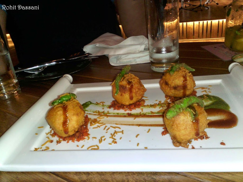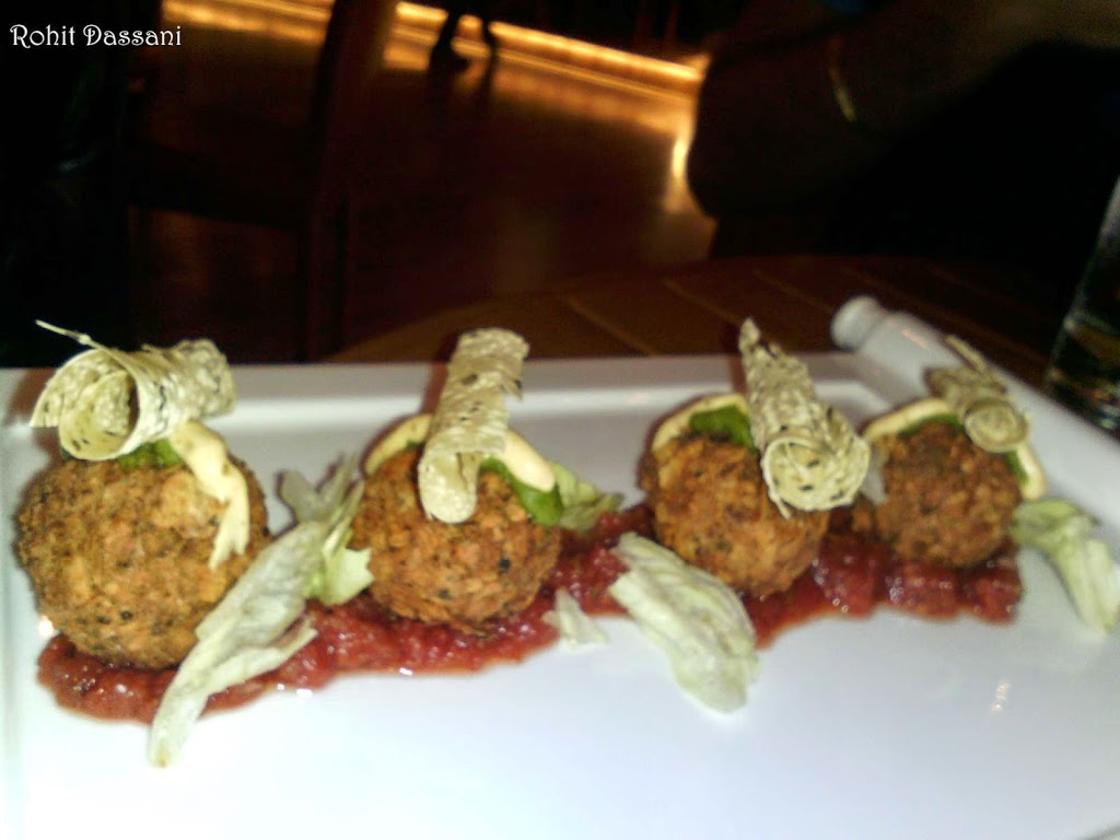 We opened our Main Course with Dal Chawal Arancini with Achar, Papad and Chutney. Oops who would have thought Dal Chawal would be so damn delicious. The typical Sicilian food form has been meshed to form a ball then deep fried. These were then topped with a bit of Southwest sauce, green chutney and Papad. The Dal Chawal Ball were presented on a Salsa flavored Chutney. The entire experience of eating Dal chawal in the most innovative form ever was out of the world. The taste of the combination was mouth-watering.