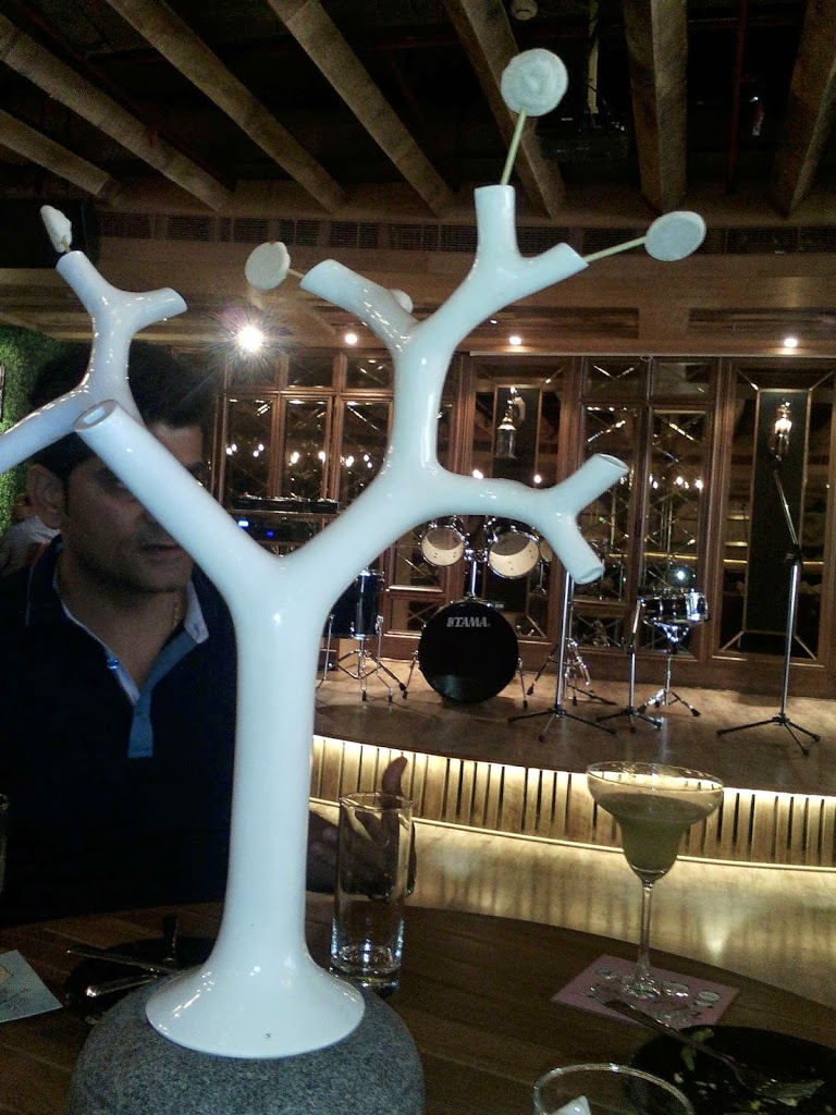 The ambiance is of a bistro with comfortable sofas, chairs and tables. The backdrop is of a bar elevated from wooden work. The center of the cafe houses a stage for a band to play live music who would be playing every other day. Every item, every decoration, every food has been reviewed again and again until it was made perfect. We went for a Chef’s menu tasting to focus more on the food and less on the puzzle of choice making. It was hard to actually count the number of courses we really had. But most of the items revolve around Molecular Gastronomy. Science including Physics and Chemistry can be seen into play in-front of your eyes. Most of the items are in the form of Tapas or small portions of food which makes trying more food possible.