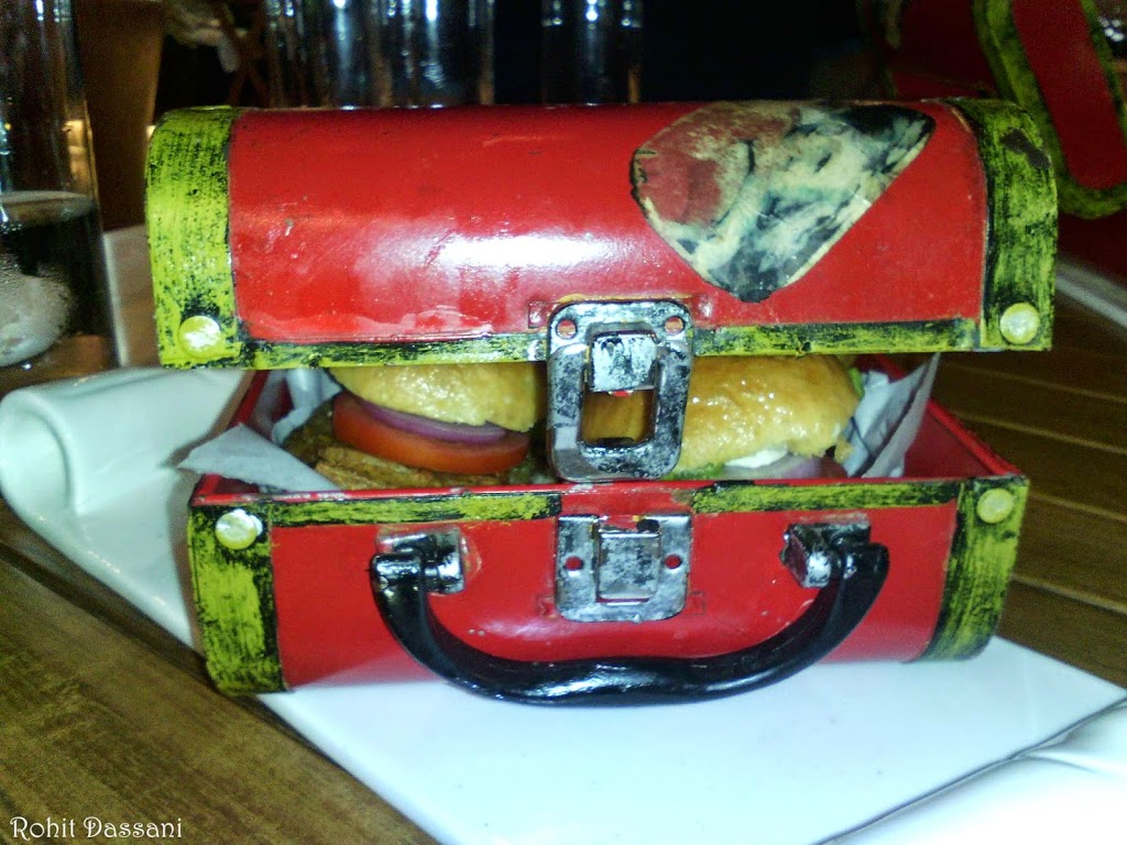 We were then introduced with Gupta Ji ke Burger. The presentation was remarkable in the form of a jewellery box. The Gupta Ji ka Burger is the inspiration of a West Delhi Burger created decades ago. It doesn’t seem that much has changed ever since. The Gupta Ji ke Burger has been recreated in the kitchens of Farzi Café having a Panner Aloo Tikki with chutney with a slice of Onion and Tomato in the same West Delhi style. But the burger was a bit dry and the bread was a bit hard. The burger comes with a handful of homemade fries. The burger overall was ok.