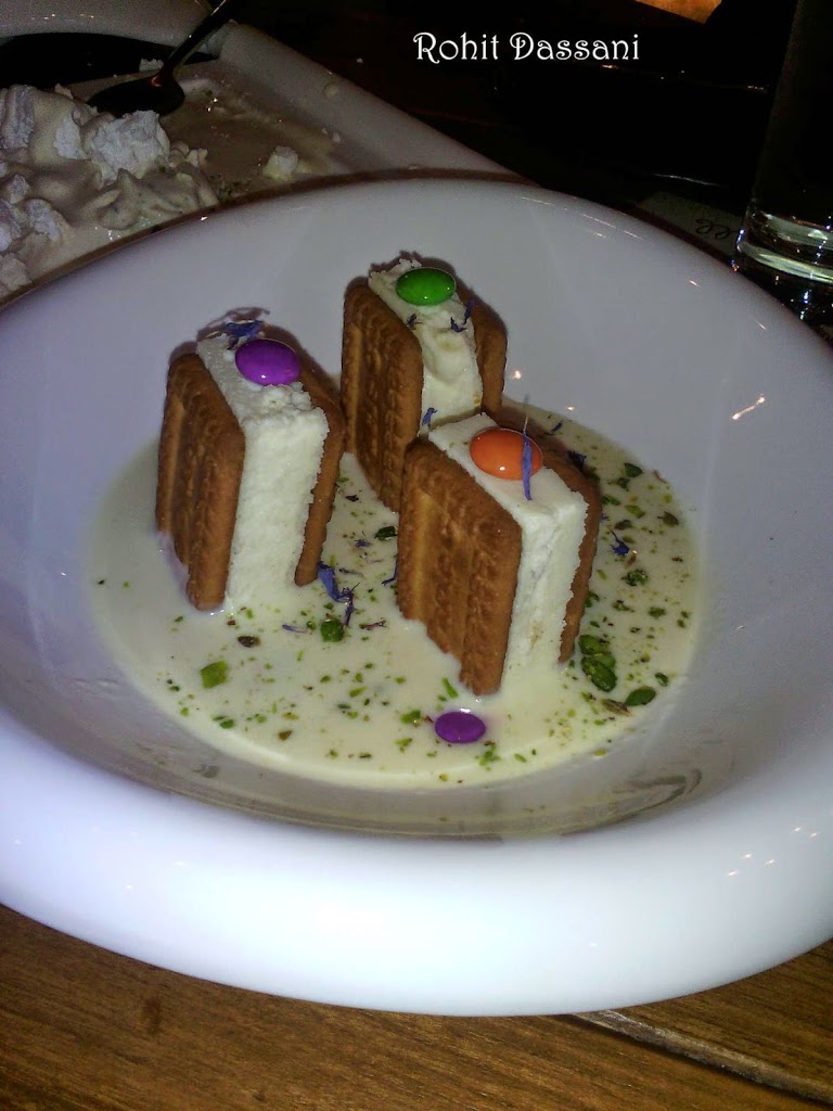 Parle-G Cheesecake and Rasmalai Tes Leches came next. The presentation of these items were world class. Both the items were not overly sweet and just sweet-enough. The Parle-G Cheesecake has thick Rabri to accompany with some Gems (yes Cadbury Gems). Both of these items were good but not great.