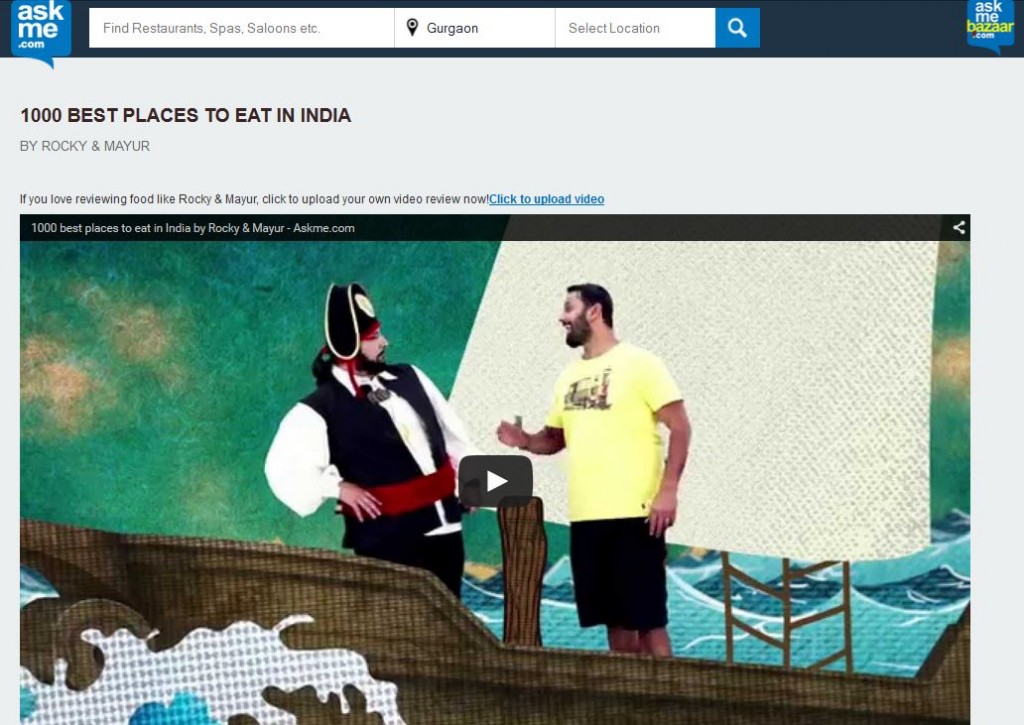 AskMe.com is also running a contest in parallel where foodies can upload a video review of their favorite place. There is an assured prize for every upload and the winner gets a chance to meet Rocky & Mayur. All you have to do is to make a 90 seconds video review, write a blog about the contest and put a status on all social handles with following hashtags – #RnMonAskme #AskmeFoodies
